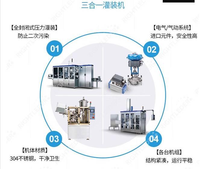 本機結構分為四大部分:洗瓶部分、灌裝部分、可編程控制部分、氣動控制部分。